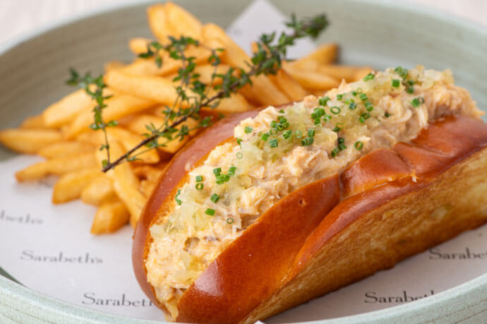 クラブミート、セロリ、エシャロット、ケチャップ、オランデーズ、ピクルス、フレンチフライ -